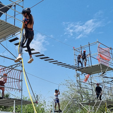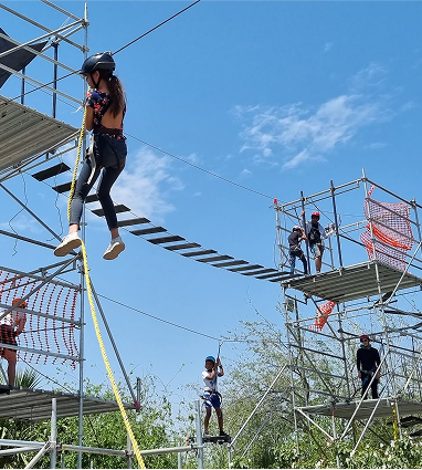 Adaptables con tirolesas y pared de escalada