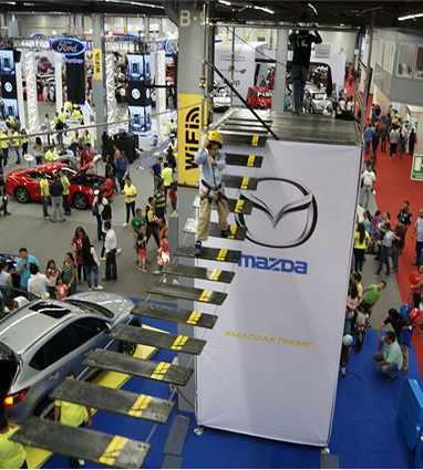 Circuito en altura con diferentes niveles, adaptable a distintos espacios y tipos de evento.
